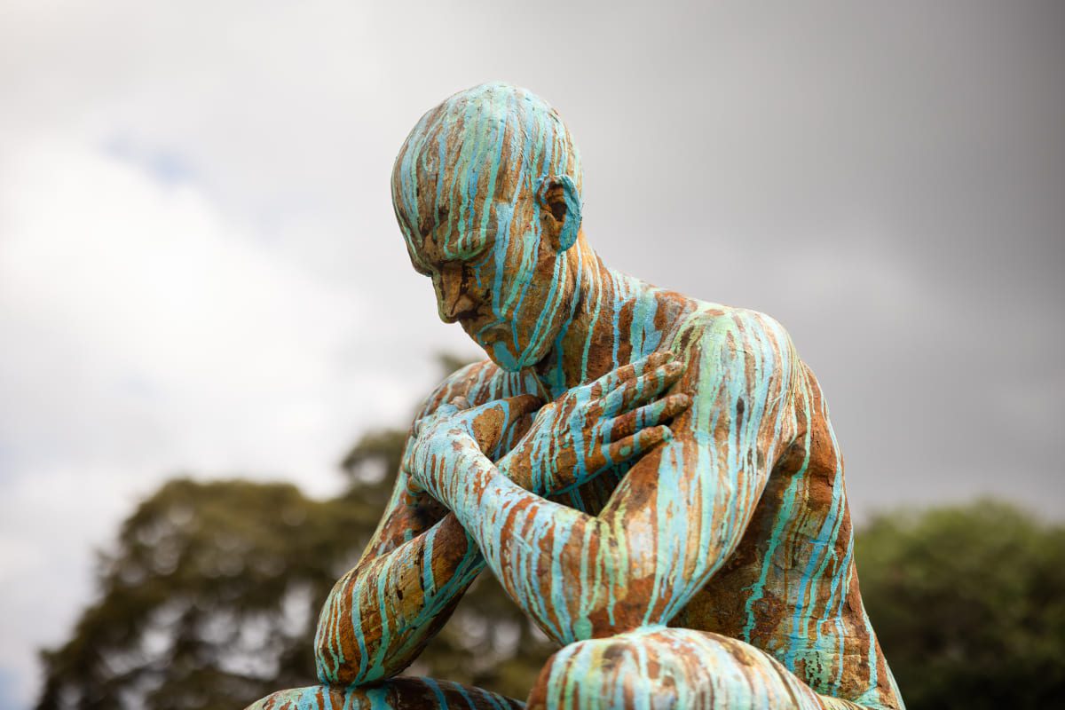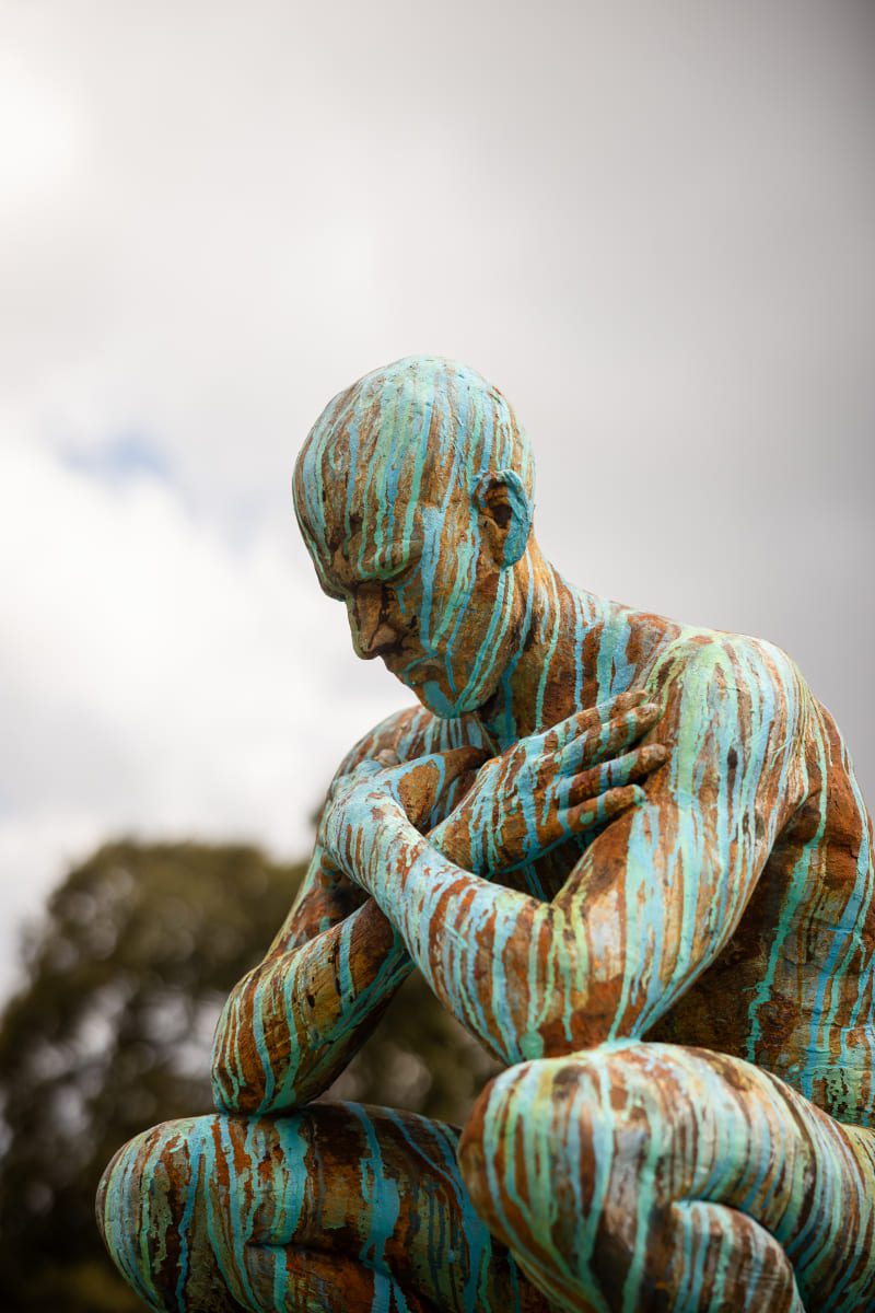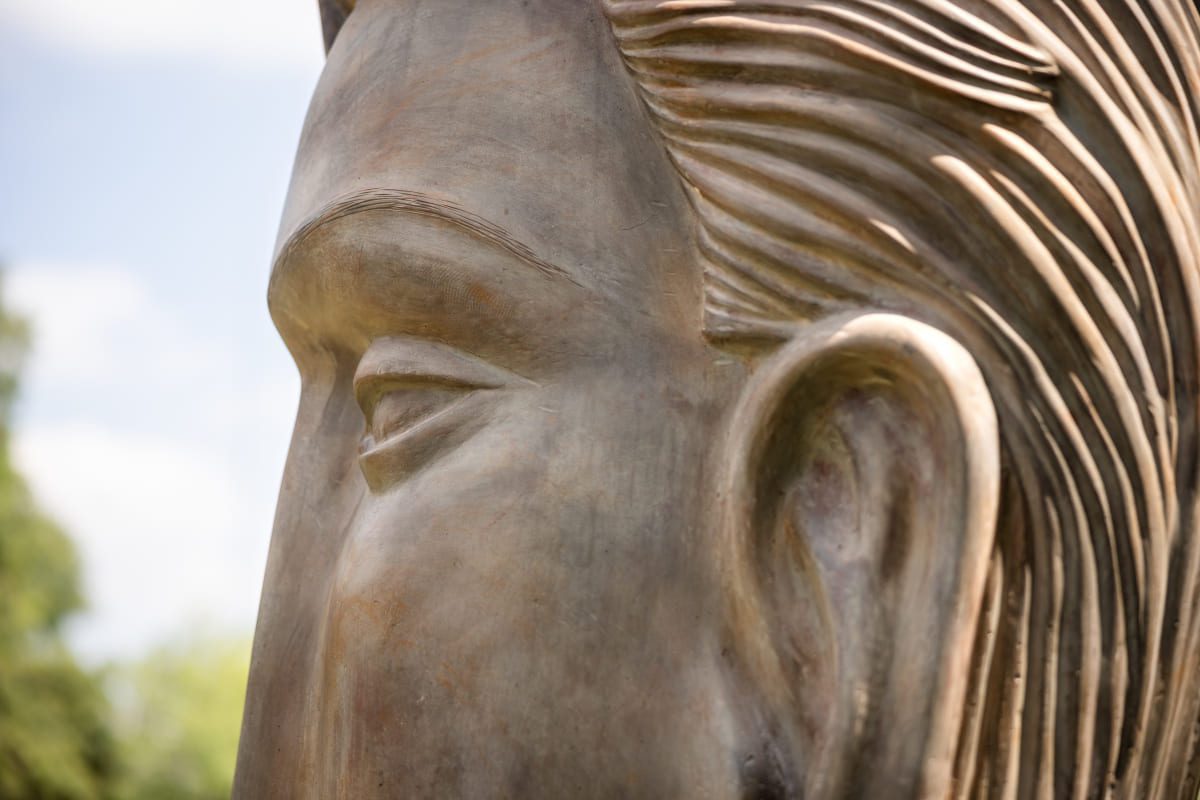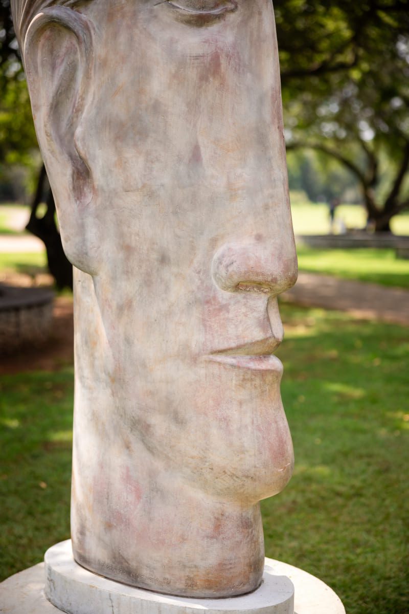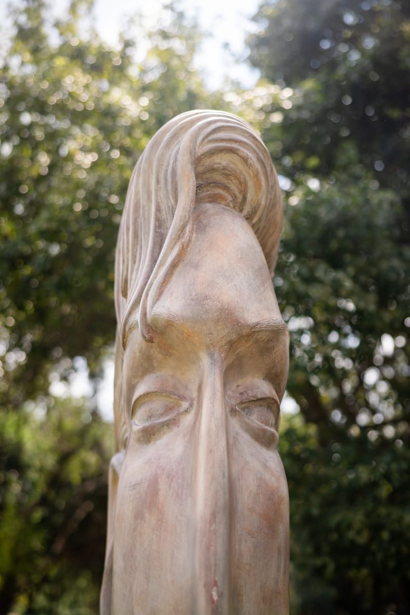 His body of work comprises towering human figures, nudes, heads, masks, hands, angels, floating and stretching figures, warriors, as well as abstract works, sculpted out of steel, metal, stone and a unique iron and polymer cast mixture, as well as bronze.